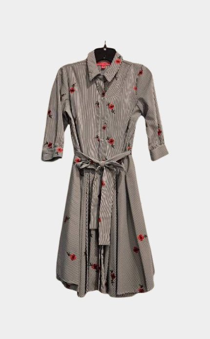 Blue White Stripes With Red Flowers Dress | RE:LUV