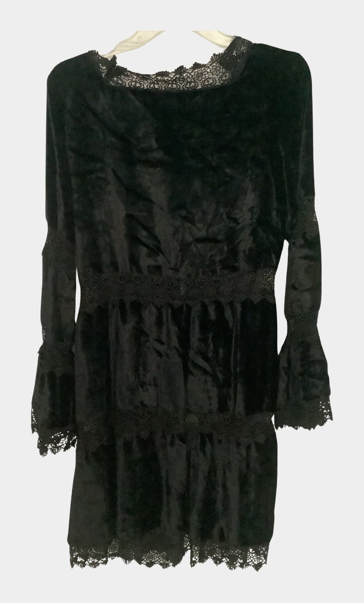 Betsey Johnson Black Velvet Lace-Trimmed Tiered Duster Cardigan w/ 3 Ties S/M NWT | RE:LUV