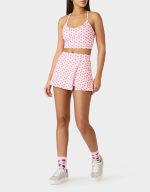 Cute cherry gingham print meets sporty style in this racerback top. The relaxed fit and breathable fabric make it ideal for workouts, weekend errands, or cozy nights in. Layer it or wear it solo—this versatile piece transitions seamlessly from gym to brunch. Perfect for anyone who refuses to choose between comfort and looking fabulous.