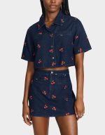 . This playful mini skirt features a vibrant cherry print that brings a fresh, fruity vibe to classic denim. Perfect for mixing and matching, it pairs effortlessly with its matching set for a coordinated look that’s full of charm and personality. Embrace a youthful, spirited style that’s ready for any sunny day adventure.