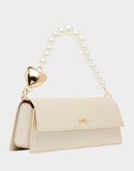 , complete with a delicate gold heart detail that adds just the right amount of sparkle. The soft ivory finish pairs perfectly with any outfit, whether you’re heading to brunch or a night out. Compact yet spacious, it’s the ideal companion for keeping your everyday must-haves close at hand while making a sweet fashion statement.
