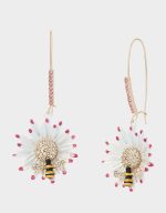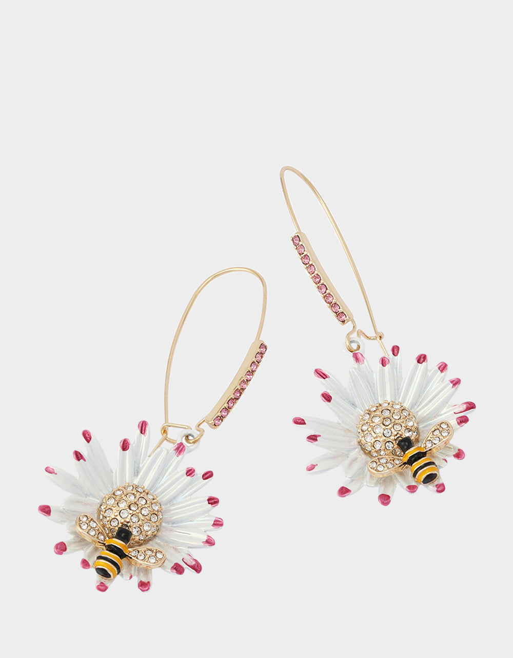 featuring dreamy flower adorned with charming bee. Adorned with delicate crystal stones perfect for an everyday statement. Bracelet has a shepherds hook closure. Made from metal, glass crystal and plastic.