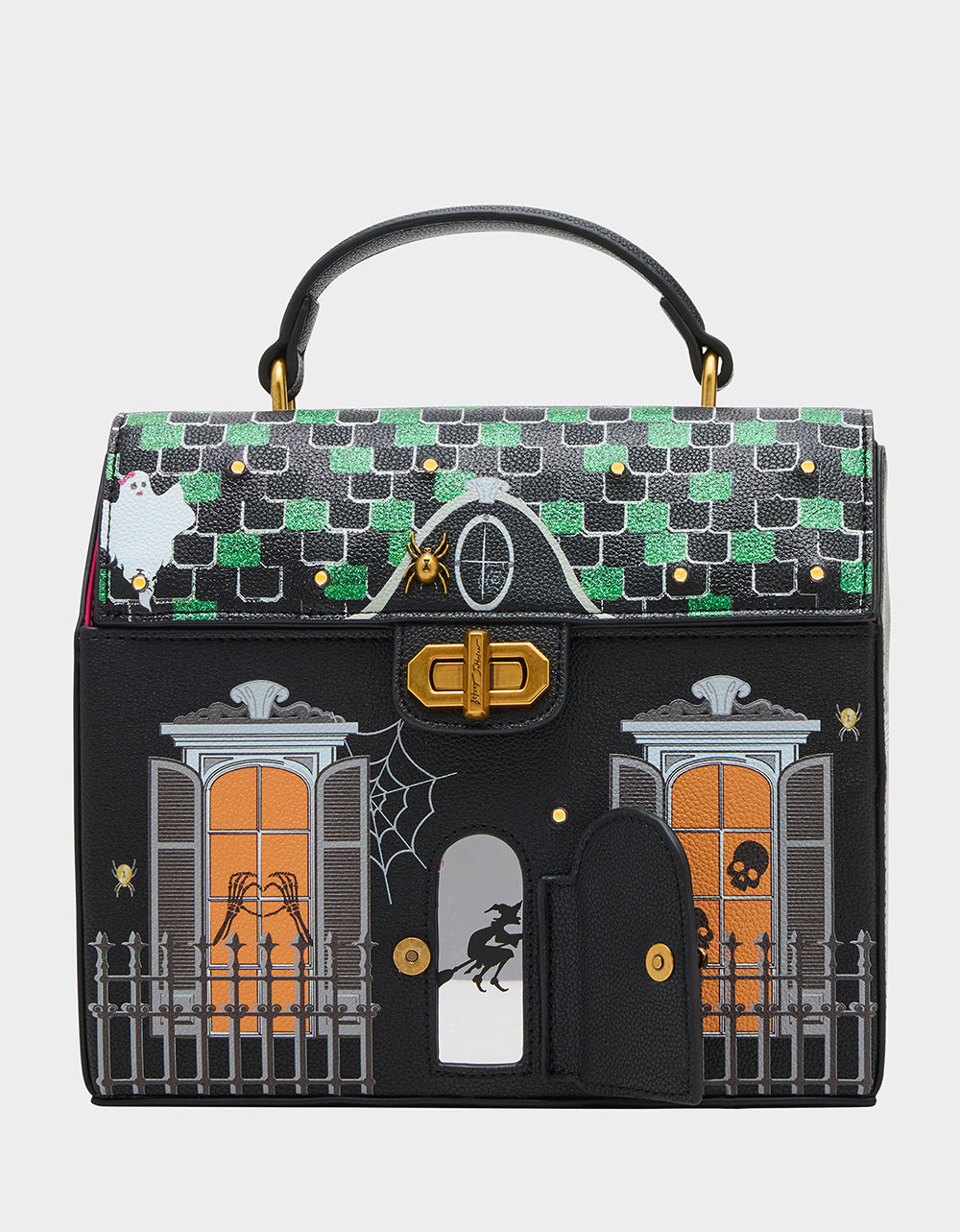 ! Featuring a haunted house theme, this playful accessory adds a touch of eerie charm to your Halloween look. Perfect for carrying your essentials while celebrating the season in style.