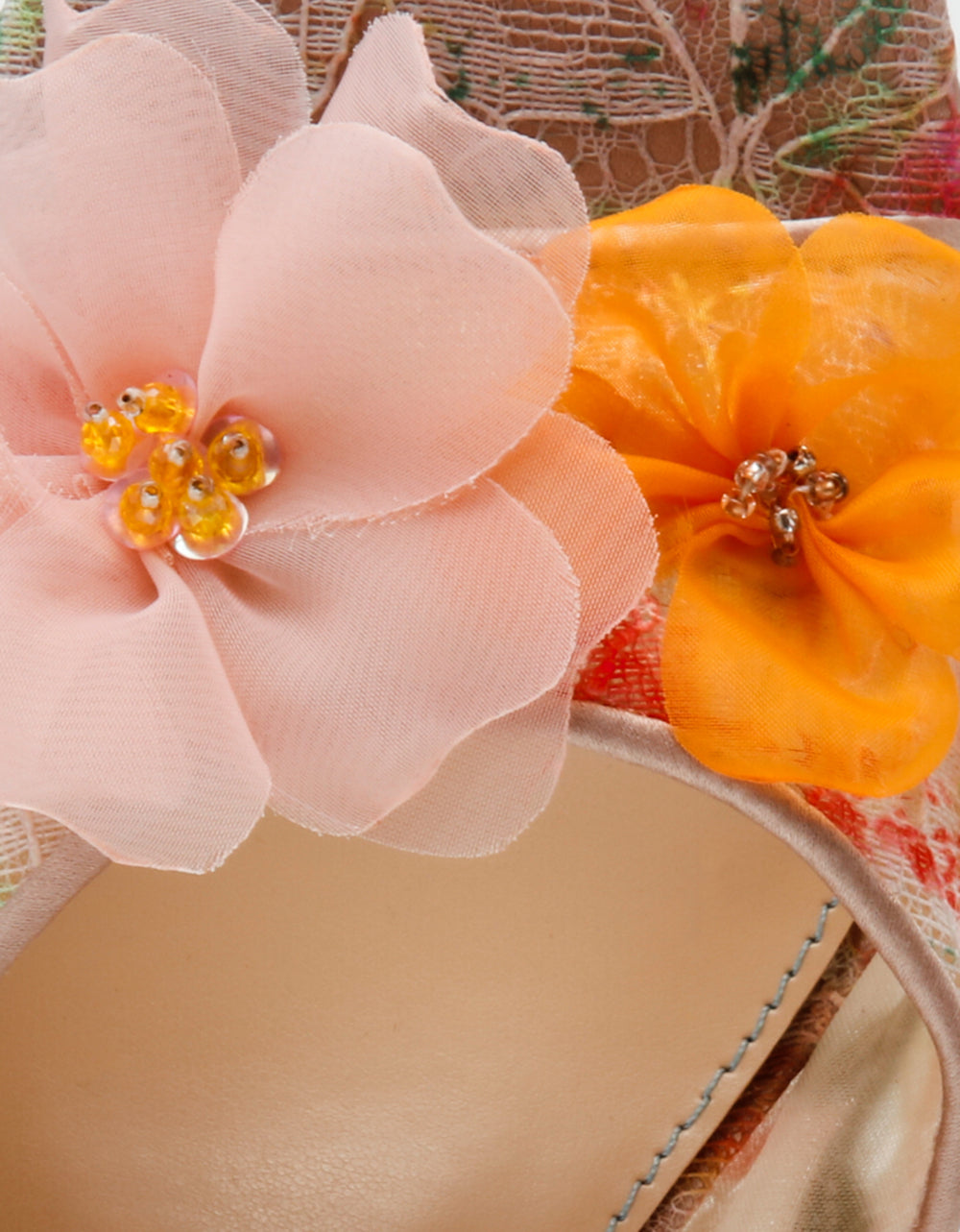 Step into fun with the HEATH NUDE MULTI mules, where delicate tulle flowers add a pop of playful charm. The padded footbed keeps your feet comfy enough to dance all day, while the easy slip-on design and sturdy block heel make these shoes your go-to for effortless style.