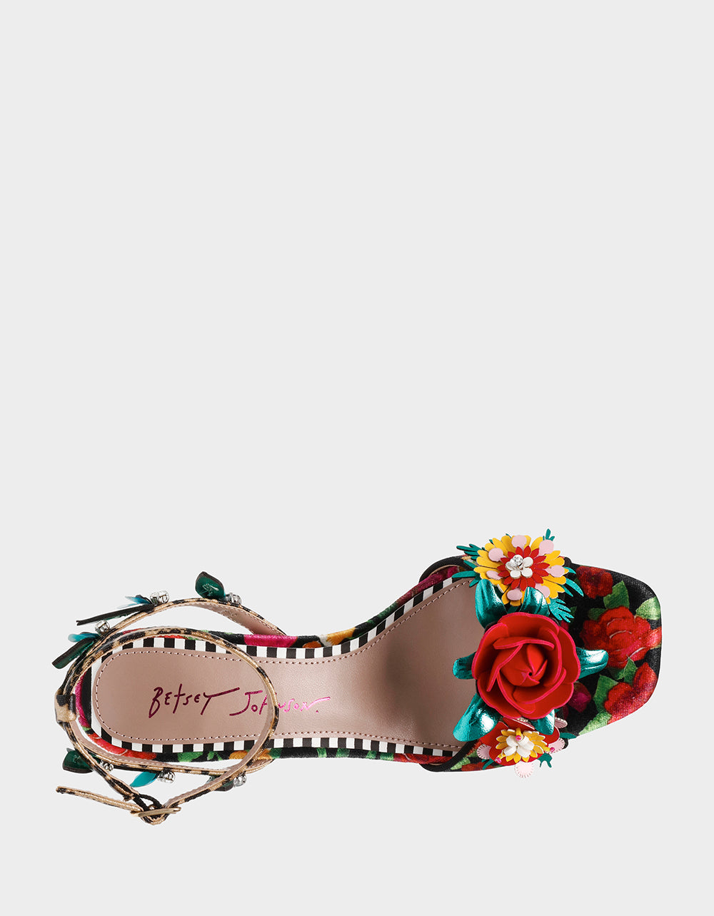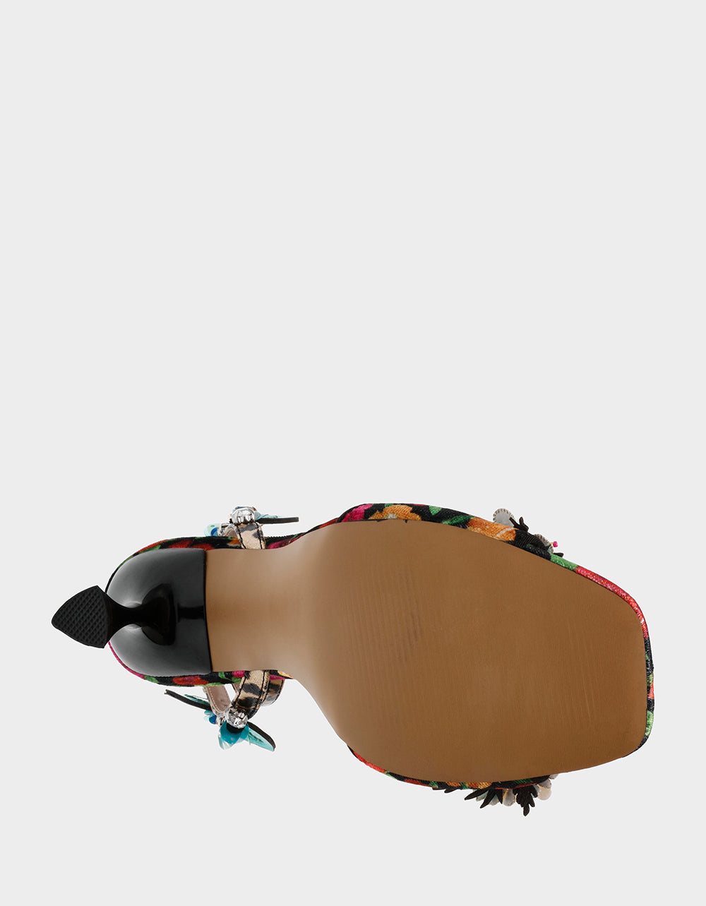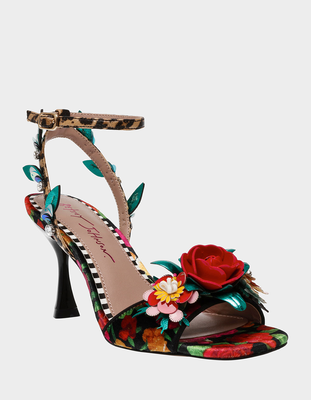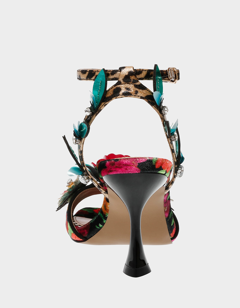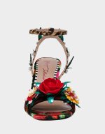 . Featuring a stunning floral design, these heels add a touch of whimsy to any outfit. Perfect for a playful day out or a night on the town.