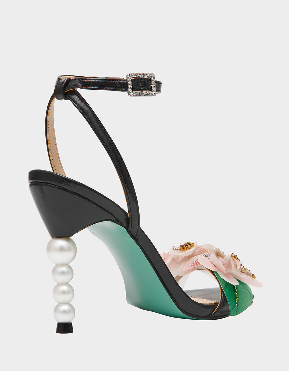 . This show-stopping shoe features a chic square toe and secure ankle strap for all-day comfort and confidence. Adorable 3D flower details and lustrous pearl embellishments add whimsical charm and eye-catching sparkle. Perfect for anyone ready to turn heads and express their bold, fun-loving personality with every step.