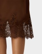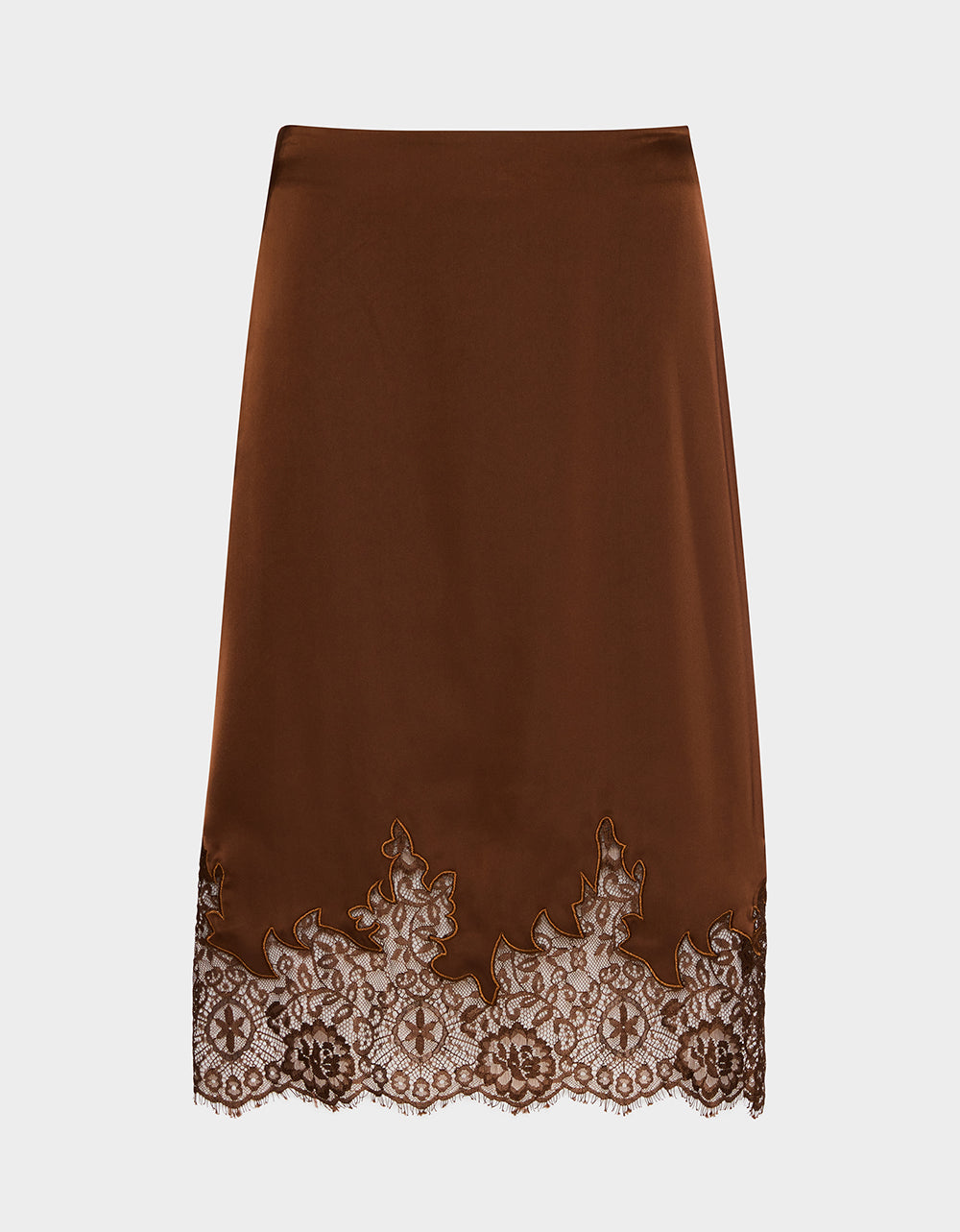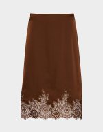 Slip into effortless elegance with this brown lace slip skirt—your new closet essential. Featuring delicate lace trim details and a flattering midi length, it’s the neutral you’ve been waiting for. Dress it up with heels and a blazer or keep it casual with sneakers and a tee. This versatile piece transitions seamlessly from day to night, proving that sometimes the simplest pieces make the biggest style impact.