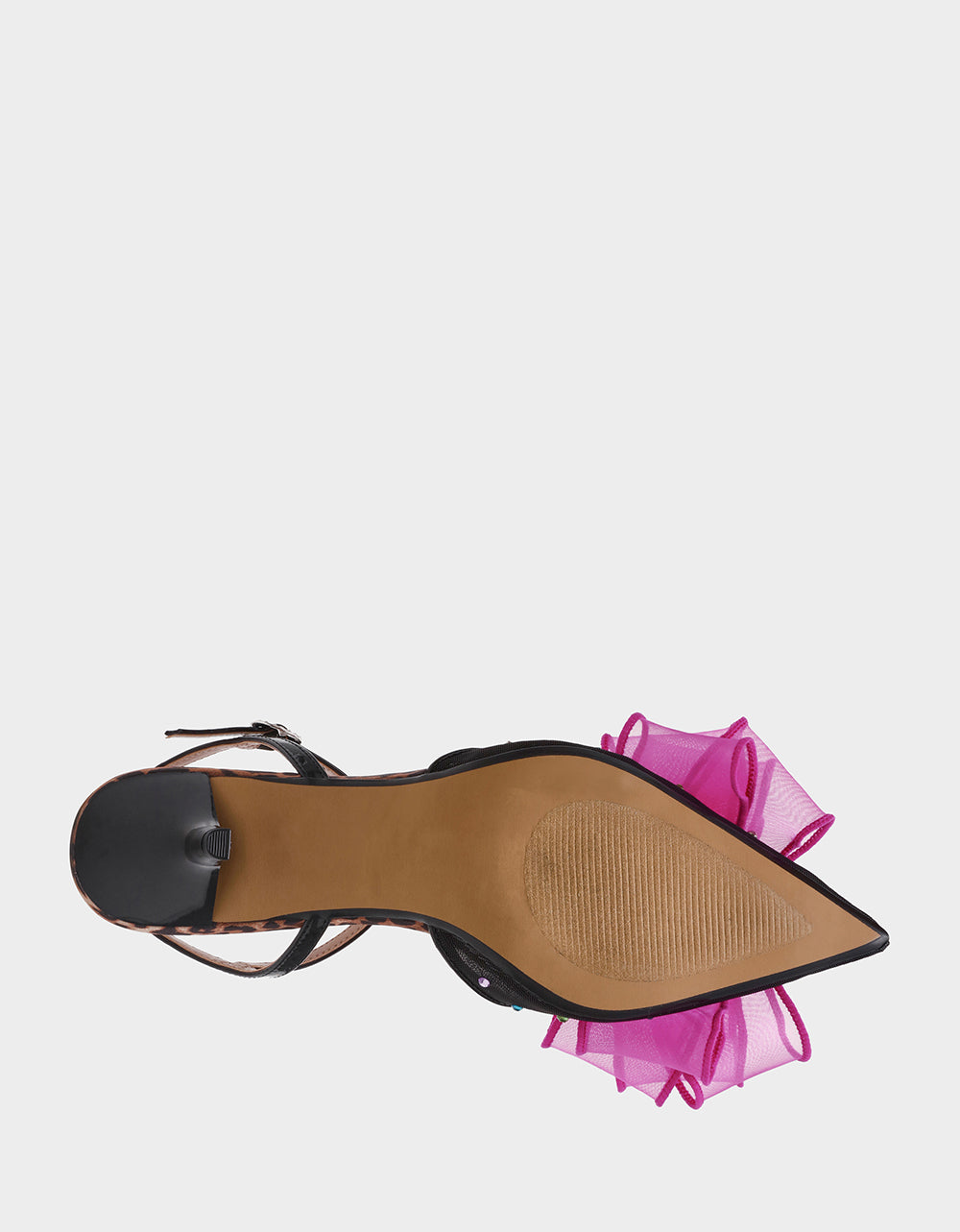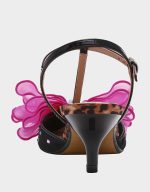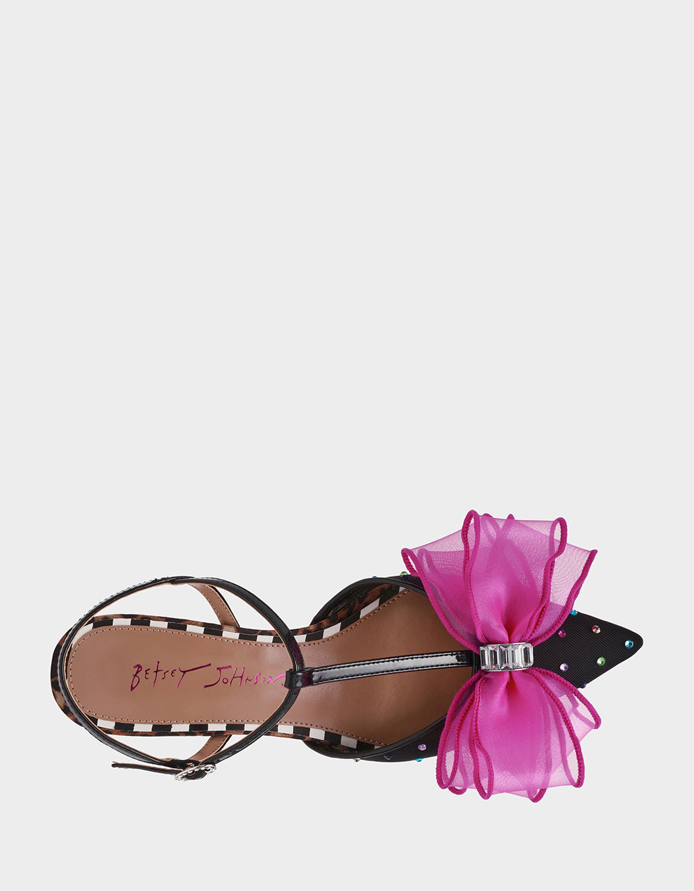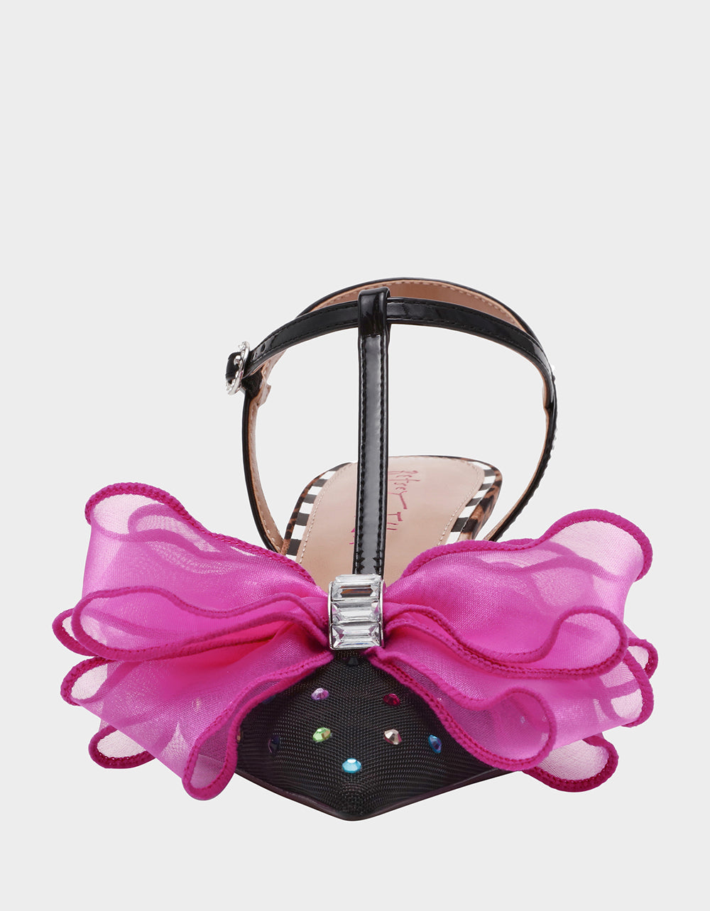 A trendy T-strap with an over-the-top tulle bow makes Betsey Johnson’s new LILLYAN kitten