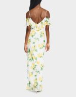 features a playful lemon print, ruffle detailing, and a trendy cold-shoulder design. Perfect for summer nights and adding a touch of fun to any outfit.