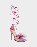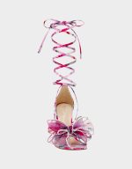 . These shoes are bound to become your go-to favorite with their securely wrapped straps and charming bow adorned with pearly accents.