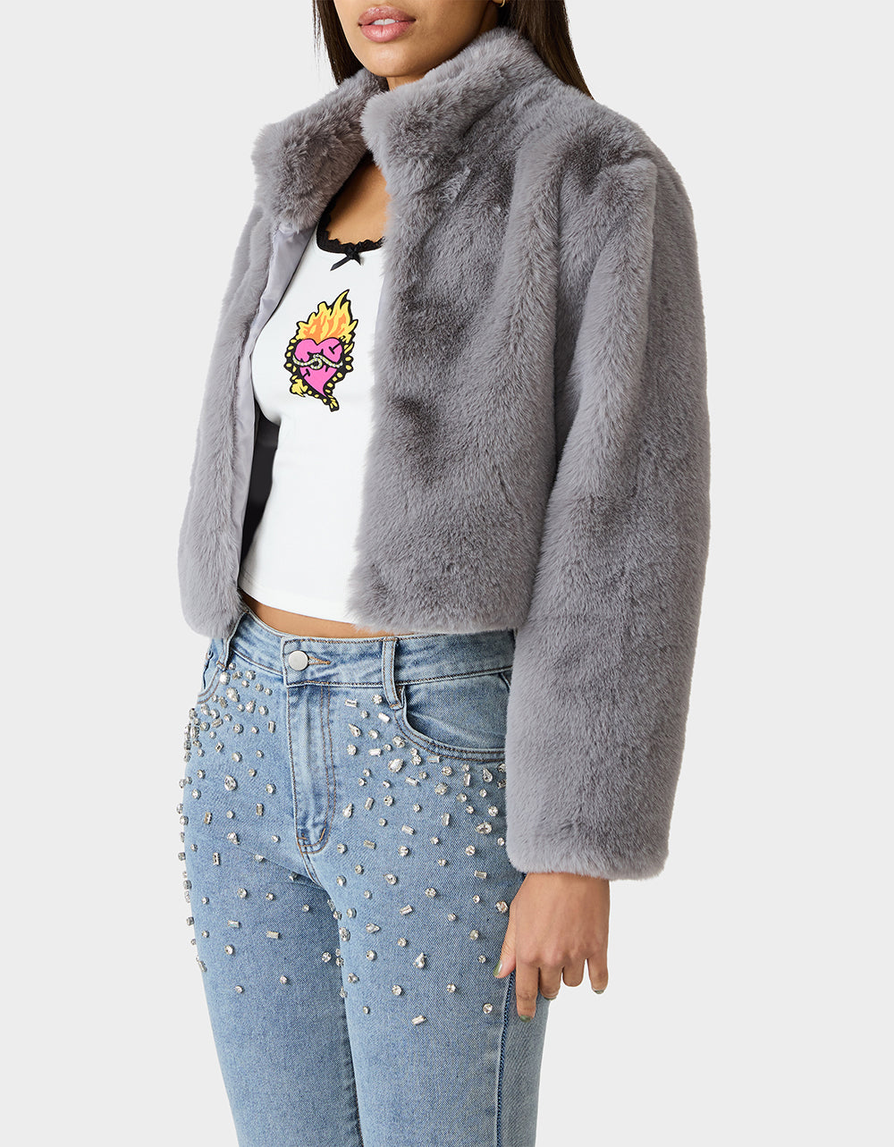 Wrap yourself in pure luxury this season with the MISTY LUXE FAUX FUR GREY jacket—your new go-to for effortless style. Impossibly soft and incredibly warm, this cozy layer strikes the perfect balance between trendy and timeless. Whether you’re dashing out the door or settling in for the day, this faux fur essential delivers that coveted plush comfort without the fuss. It’s the jacket that makes every moment feel a little more fabulous.