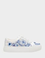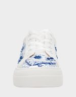 gives all the comfort of a sneaker with flair! The mesh side panels an satin toe are adorned with embroidery and hand-beading. The look is finished with tulle laces.
