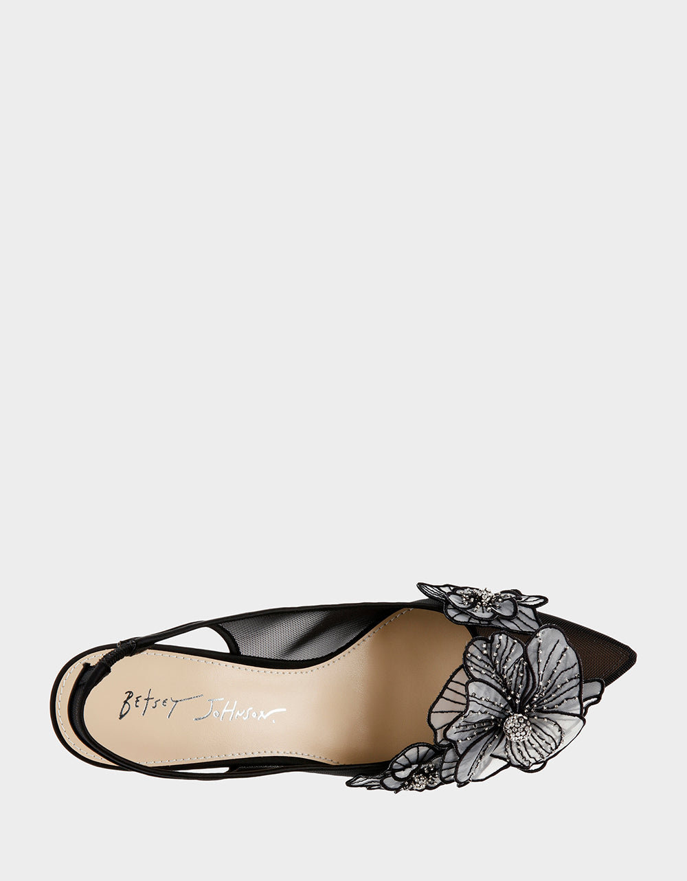 Let your feminine side bloom with the PETRA floral slingback mesh