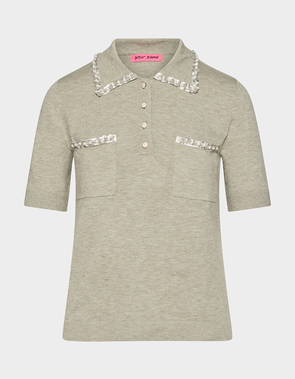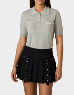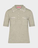 Elevate your casual game with this heather grey polo that proves luxury doesn’t have to break the bank. Adorned with pearl embellishments on the collar and pockets, it’s the perfect blend of sporty sophistication and effortless style. Whether you’re heading to brunch or running errands, this polished piece brings an unexpected touch of glamour to your everyday wardrobe. Comfort meets chic in one irresistible package.