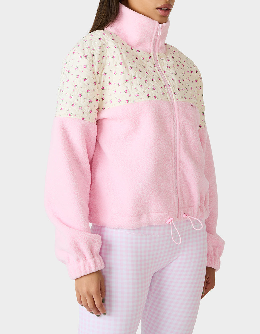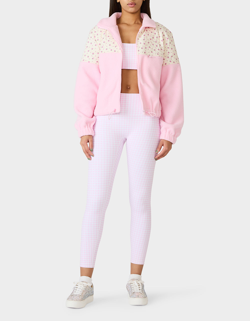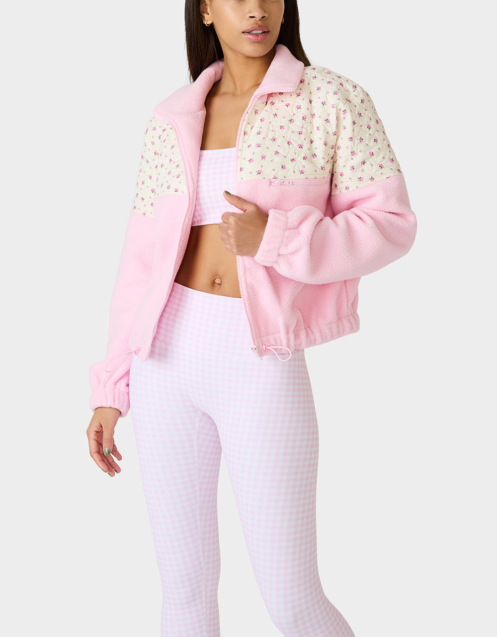 Wrap yourself in cozy vibes with this pretty-in-pink plush jacket featuring an adorable floral print. Perfect for layering over your workout gear, lounging at home, or adding a soft touch to any casual adventure. The plush fabric keeps you snug and comfortable while the playful design brings instant charm to your everyday look. A closet essential that’s as fun as it is functional.