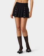 Make a statement with this edgy pleated mini skirt that channels pure goth glam energy. Sharp pleats create dramatic movement while rebellious stud detailing adds an attitude-packed edge. Perfect for anyone ready to embrace their darker, bolder side. Pair it with your favorite band tee or leather jacket for an instantly iconic look that says you don’t do boring.
