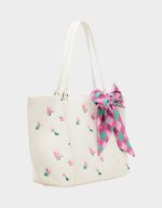 Carry your essentials in style with the ROSEBUD TOTE CREAM, featuring a stunning floral print and a signature bow detail. Perfect for everyday adventures, this playful