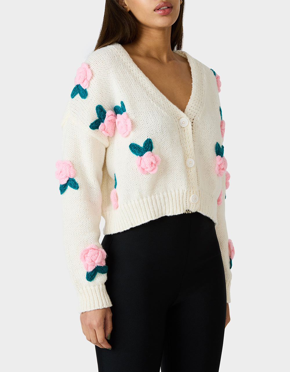 Wrap yourself in effortless elegance with this cream rosette cardigan—the perfect layering piece for those moments when you need a little extra warmth and a whole lot of charm. Featuring delicate rose floral details, this cozy essential pairs beautifully with everything from dresses to denim. Slip it on and instantly elevate your everyday look with a touch of romantic flair.