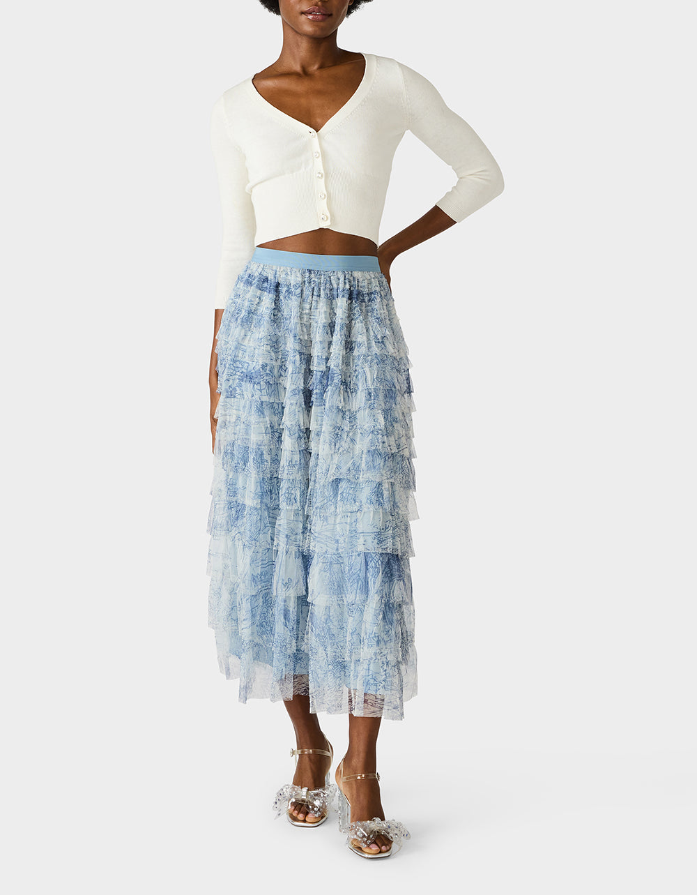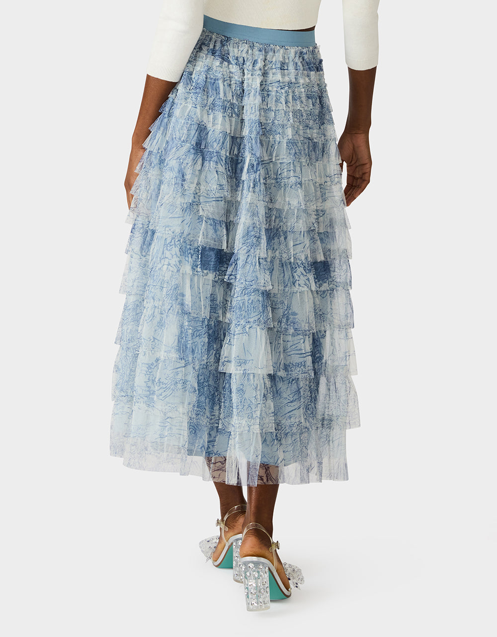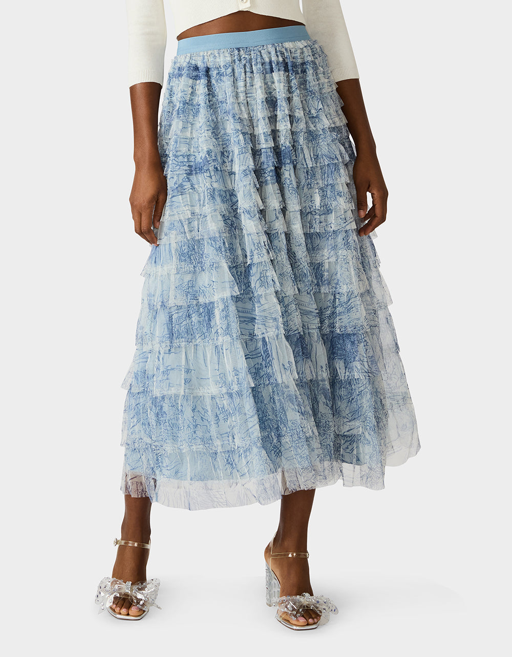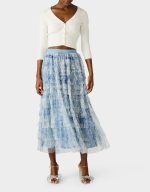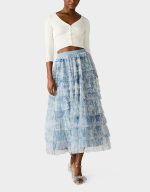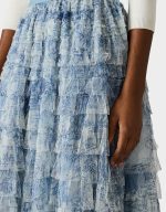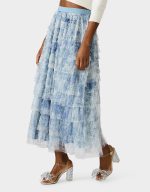 Slip into this enchanting dusty blue maxi skirt and let the cascading ruffles do the talking. This maxi skirt features an abstract, sketch?like botanical print with soft, layered linework that creates a dreamy, hand?drawn nature motif. With its flowing silhouette and layered details, this long-length showstopper brings instant polish to any outfit—from casual daytime looks to evening adventures. It’s the kind of versatile piece that becomes an instant favorite, effortlessly transitioning from weekend brunch to night out. Pure elegance with a playful twist.