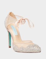The SB-IRIS is a glitzy delight. With a luxe upper of mesh and satin, this sassy stiletto adds a sexy touch to any outfit. An almond-shaped toe and a feminine ribbon tie at the ankle. A collection of sparkly jewels trim this dazzling pair of heels.