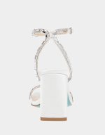 ! This must-have bridal heel is embellished with subtly thin rhinestone straps – perfect for adding sparkling style to your look. Feel the comfort and hit the dance floor in confidence!
