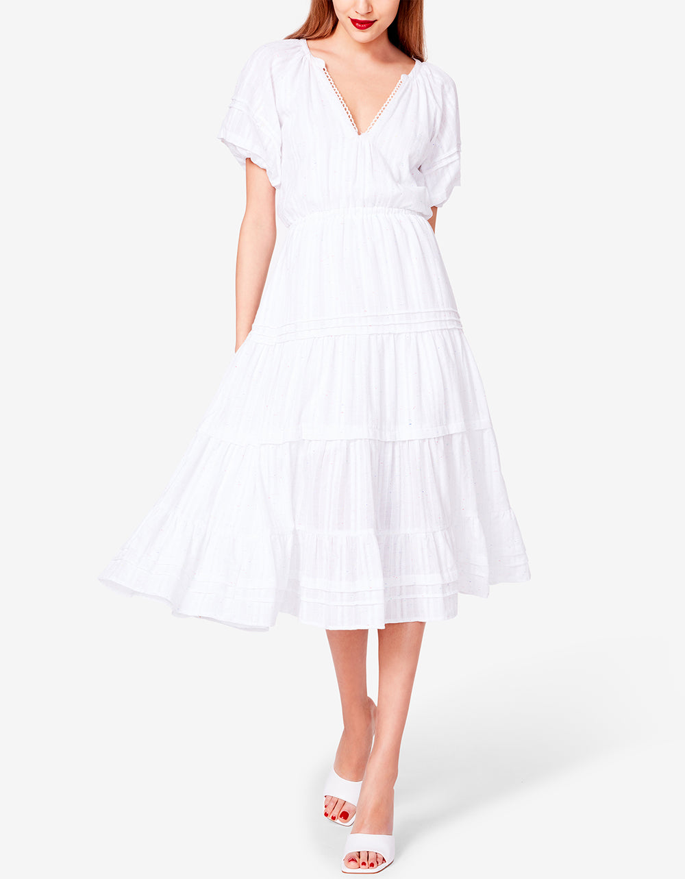 SPECTATOR PUFF SLEEVE MIDI DRESS WHITE | RE:LUV
