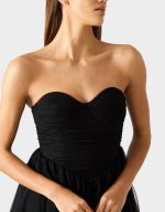 Spin into the spotlight in the TULLE TWIRL DRESS BLACK, our strapless mini dress that’s equal parts romantic and rebellious. The fitted corset-style bodice gives way to a dreamy, flowing skirt that begs to twirl. Dress it up with sleek heels for a night out, or throw on combat boots for an edgy vibe that’s totally you. Versatile, flirty, and endlessly fun—this is the dress that does it all.