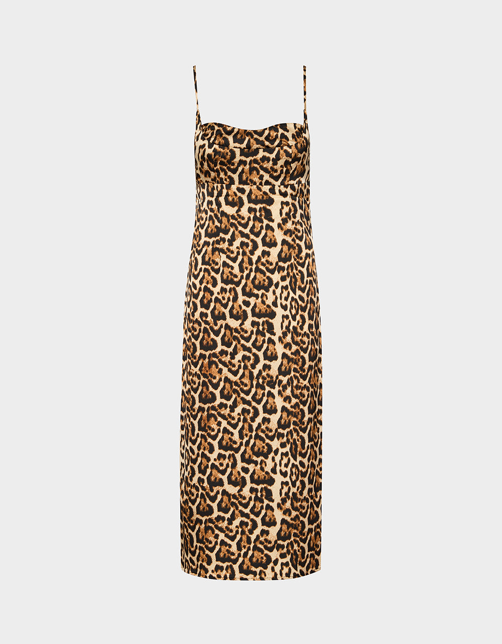 Embrace your fierce spirit with the UNTAMED DRESS LEOPARD LEOPARD. This playful midi dress features a bold leopard print and delicate spaghetti straps, perfect for turning heads. Whether you style it with heels for a night out or boots for a casual vibe, it effortlessly lets your wild side shine.